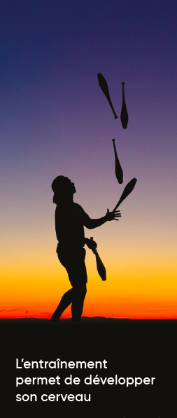 Cet exemple des jongleurs illustre ce dont il s’agit. En 2004, une recherche universitaire, menée en Allemagne, a montré que lorsqu’un groupe s’est entraîné intensivement à jongler pendant 3 mois, une expansion de la matière grise d’une zone du cerveau peut être mise en évidence par une IRM. Ensuite, après 3 mois d’arrêt de l’entraînement et de la pratique, l’expansion diminue. Cependant, elle épaissit de nouveau lorsque l’entraînement intensif reprend. Le même constat est fait auprès des chauffeurs de taxis londoniens dont l’examen professionnel est très exigeant, ainsi qu’auprès de musiciens.
