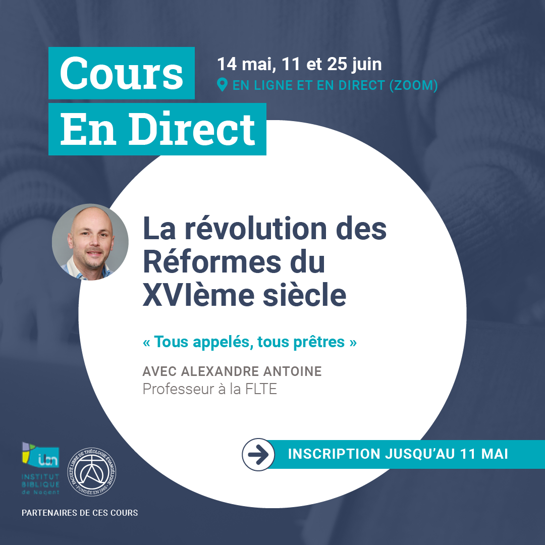 « Voyez quel amour le Père nous a donné » (1 Jn 3.1). Le séminaire confère une compréhension approfondie des fondements de notre salut : les alliances dans l’histoire, l’union avec Christ, le rôle de l’Esprit. Ensuite seront traitées différentes facettes de notre salut : la régénération, la conversion, la justification par la foi, l’assurance du salut, l’adoption, le baptême du Saint-Esprit, la sanctification. Nous chercherons aussi à savoir si l’on peut perdre son salut.
